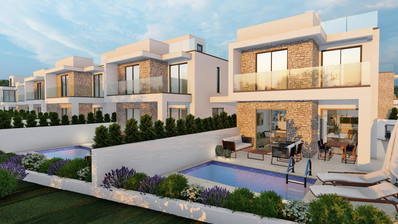 For sale: Detached villa under construction in the lovely area of Agios Georgios Pegeia. This modern property offers a comfortable internal space of 126.25 square meters, thoughtfully designed to provide spacious living for families or couples. The villa features three bright bedrooms, providing privacy and comfort for all residents.