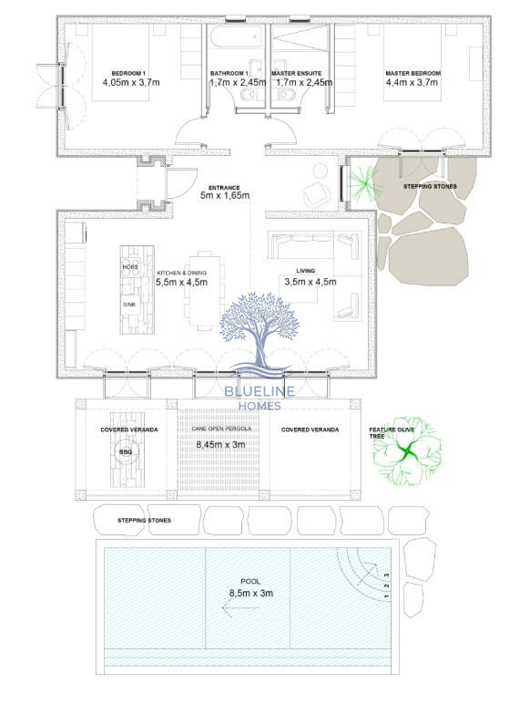This stunning 2-bedroom villa masterfully combines modern architecture with traditional Cypriot style, offering a serene and luxurious retreat. With a design that seamlessly blends indoor and outdoor living, the villa provides a perfect balance of privacy and open-plan elegance, set amidst a beautifully landscaped Mediterranean garden.